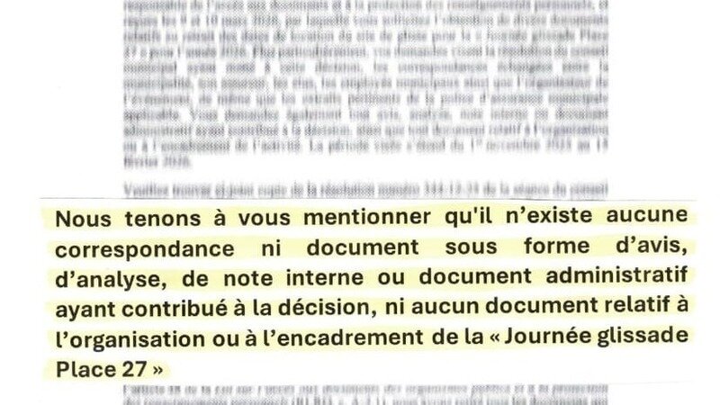 👉 À la suite d’une demande officielle d’accès à l’information, la direction générale de la municipalité confirme qu’il n’existe :