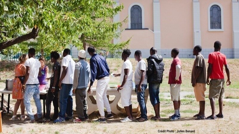 Depuis le 30 août, les exilés sont hébergés sous tentes par la paroisse Sainte Catherine de Briançon. Les malades, femmes et enfants sont placés en sécurité dans une salle paroissiale.
