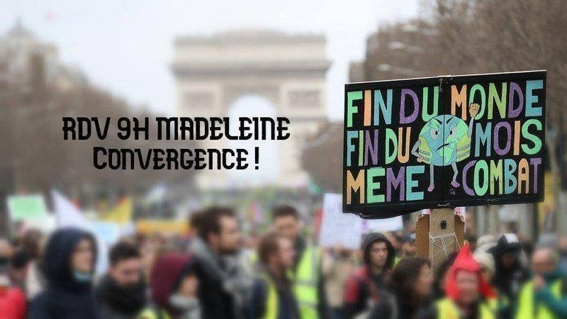 "Suite à la tribune appelant à une convergence réelle le 21 septembre, des écologistes, gilets jaunes, et collectifs en lutte ont décidé d'un rendez vous commun le matin. Nous serons à 9h à Madeleine, celles et ceux qui le souhaitent partiront sur les Champs Élysées avec les GJ à 9h30."
