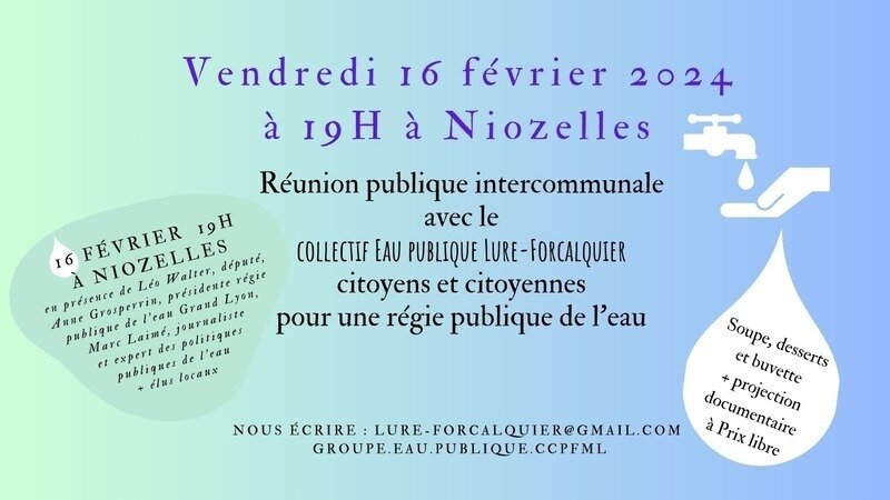 Petition updatePour une consultation publique sur la gestion de l’eau en Comcom Forcalquier-LureRéunion publique demain, 16 février, salle de Niozelles