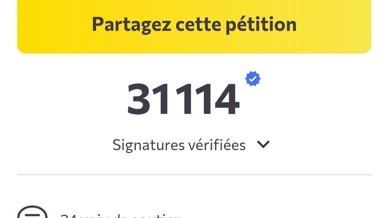 Grâce à vous, la barre des 30.000 signatures a été largement dépassée en 11 jours et on peut espérer que l'on pourra atteindre les 100.000 en un mois. Poursuivons nos efforts !