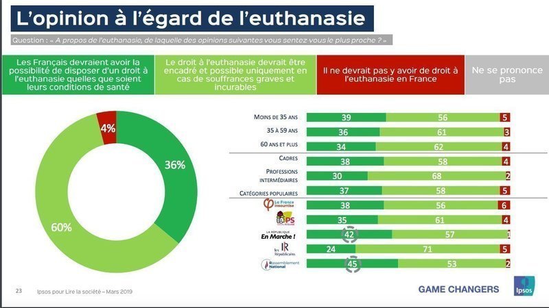 Un nouveau sondage sur le sujet de la fin de vie, effectué par l'Institut Ipsos dans le cadre de la « 28ème Journée du livre politique », a été publié le 3 avril 2019.