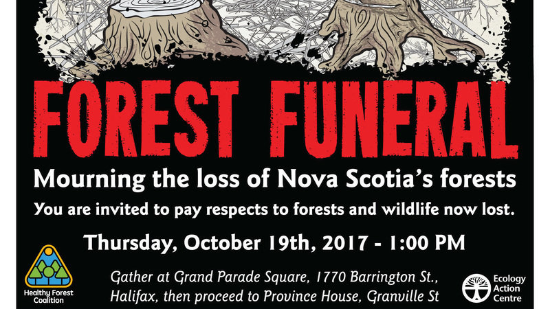 Nova Scotia has traditionally been covered by a mixed Acadian Forest, a temperate broadleaf and coniferous forest that makes the transition between the oak and maple dominated broadleaf forests south of us and the boreal forests north of us. The biodiverse Acadian forest contains high value trees of mixed ages that provide habitat for birds, mammals, amphibians, reptiles and insects and protect watersheds. These forests store carbon both above and below the soil. Current and past forestry practices are destroying this mixed Acadian forest. Clear cutting followed by replanting and glyphosate spraying are replacing the mixed Acadian forest with a boreal forest. Essentially our forests are being transformed into pulp plantations. Many Nova Scotians are mourning the loss of our Acadian forest. Public concern over forestry practices has been increasingly palpable. Witness the outcry over the recent clearcut in the Wentworth Valley, the massive support of this petition and the outcry against the management of western Crown lands by Westfor, a consortium of major mills. Poor forest management and short-sighted political decisions have led to massive and potentially irreversible forest destruction. A forest funeral on October 19th will pay homage to the forests resources that Nova Scotia has lost through over-harvesting and rampant clearcutting. Indigenous voices and a eulogy to the forest will help Nova Scotians express their concerns.