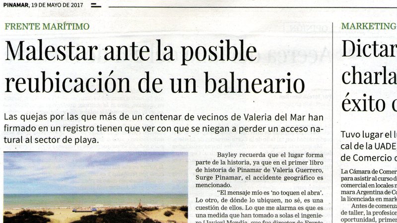 Petition updateOposición al arrebato del Abra Vieja de la playa Betbeder de Valeria del MarEl periódico Pionero de hoy, con la Oposición.