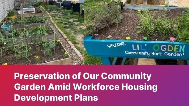 Kampanya güncellemesiPreservation of Our Community Garden Amid Workforce Housing Development PlansCall for Testimonials about the Garden & Community