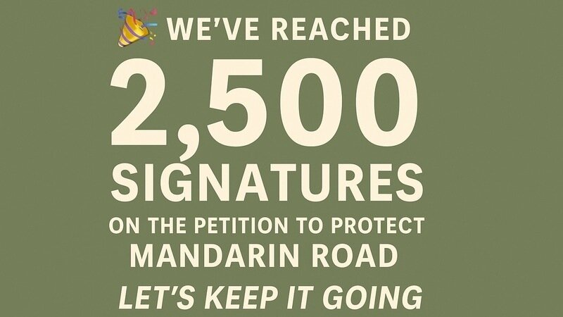 Thanks to the incredible support of our neighbors, friends, and community advocates, our petition to protect historic Mandarin Road has now reached 2,500 signatures! 🙌