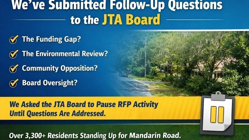 After reaching out to the Chairman of the Jacksonville Transportation Authority Board, we did receive a response, and our concerns were forwarded to the JTA CEO.