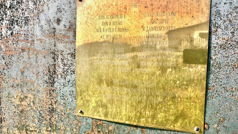 The plaque that remains on the Dauphin Rail Turntable and was put in place in 1997 names the community members that raised the funds to then purchase and preserve this piece of Dauphin's rail history.