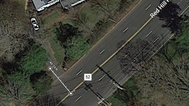I have marked on the Google Maps image included with this update a line that is 40 feet from the centerline of Red Hill Road, near the proposed KIP 20 strip mall development. (Sadly the historic house and the trees that used to surround it are long gone.) The significance of "40 feet" is that the County Planning Board, which is responsible for changes on County Route 52 a/k/a Red Hill Road, required the following (item 2 on their response to KIP 20's submission):