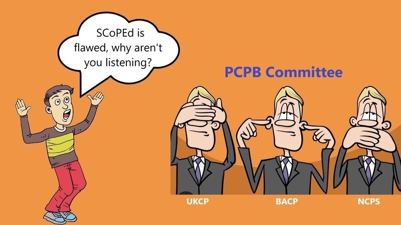 Devaluing experienced professionals: SCoPEd demotes Senior Accredited practitioners by removing their titles and placing them in a lower column. This is disgraceful, totally wrong and it is potentially damaging to their careers. There is no prospect of “Grandparenting” and when they have tried to object, they are silenced and cast aside by so-called “membership lead” professional bodies who refuse to discuss options and who will not listen to them.