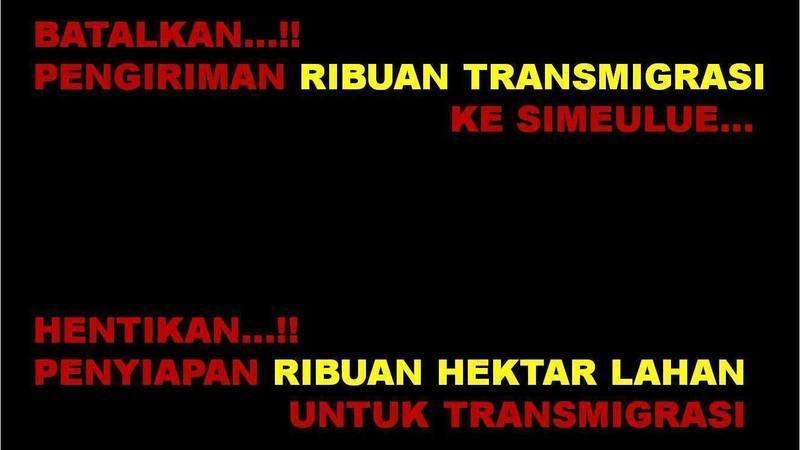 Tolak Program Transmigrasi Jawa Ke Simeulue