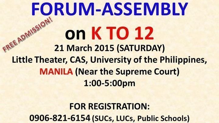 United by our commitment to serve the public through ensuring quality education for everyone, we, teachers, parents, students, administrators, professionals, and concerned citizens of the Philippines, call upon the second Aquino regime to IMMEDIATELY SUSPEND THE K TO 12 PROGRAM, BASED ON THE FOLLOWING REASONS: