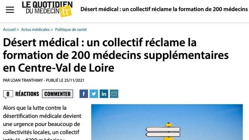 Petition updateUrgence : formons 200 médecins de plus par an en région Centre-Val de Loire !Le Quotidien du Médecin : Désert médical : un collectif réclame la formation de 200 médecins supp...