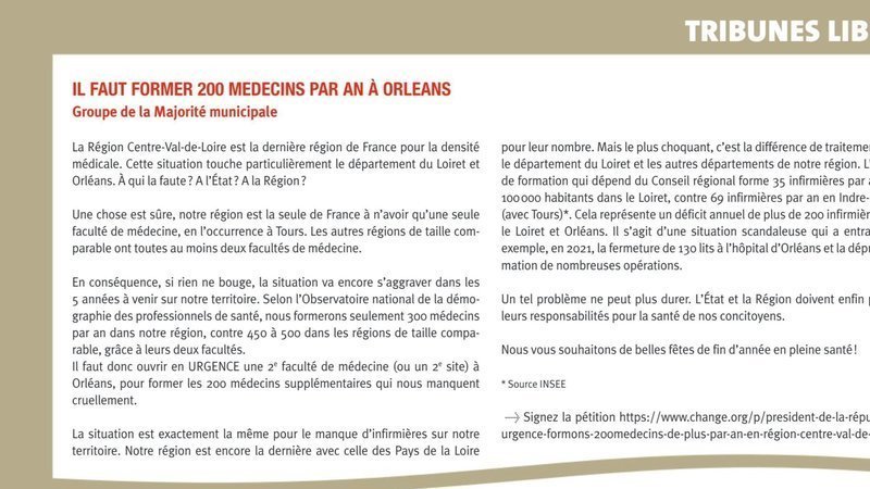 Petition updateUrgence : formons 200 médecins de plus par an en région Centre-Val de Loire !Soutien de la Ville d'Orléans