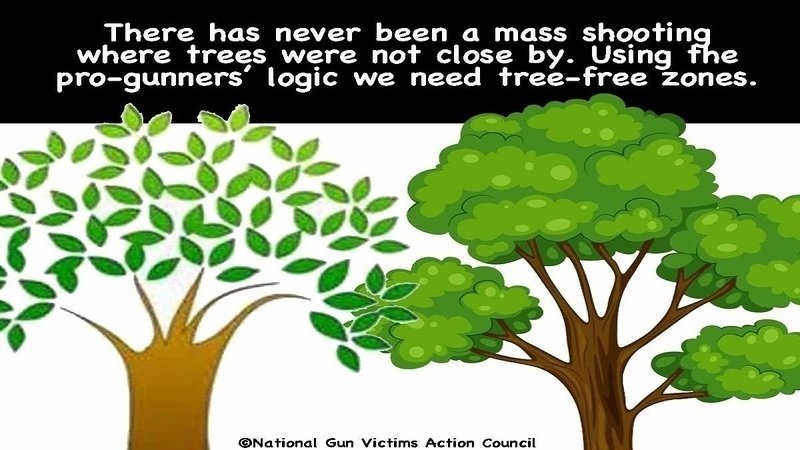 YET, THE NRA CLAIMS THAT GUN-FREE ZONES ARE THE REASONS MASS SHOOTINGS OCCUR SO THEY MUST BE ELIMINATED. (WE OBSERVE THAT MASS SHOOTINGS ALWAYS OCCUR IN AREAS SURROUNDED BY TREES SO TO STOP MASS SHOOTINGS PERHAPS WE SHOULD FOCUS ON TREE-FREE ZONES.)