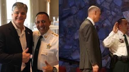 Senator Scott signing in his appointment Sheriff Carmine Marceno. Sean Hannity gives thumbs up to sheriff after he gets an honorary gold badge from Carmine Marceno.