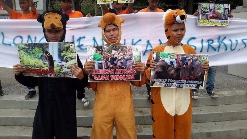 The Scorpion Wildlife Trade Monitoring Group called on the Indonesian President, Mr. Joko Widodo to stop the circus and all wildlife attractions in Indonesia because the attractions are a form of exploitation and cruelty to the animals. The demands were presented at a rally in front of the state palace on Wednesday May 17th, 2017.