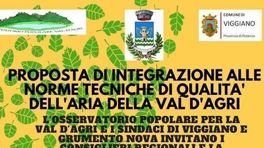 Sperando di far cosa gradita, segnalo questa iniziativa che si terrà il 20 dicembre alle ore 18.00 - Viggiano (PZ) per sostenere una proposta di integrazione alle norme tecniche di qualità dell'aria della Val d'Agri.