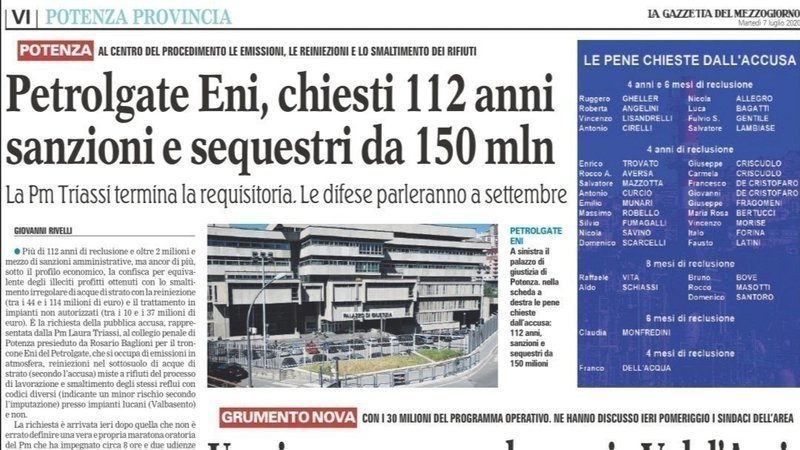 In fondo l'articolo che informa sulla richiesta dell'accusa al processo petrolgate.