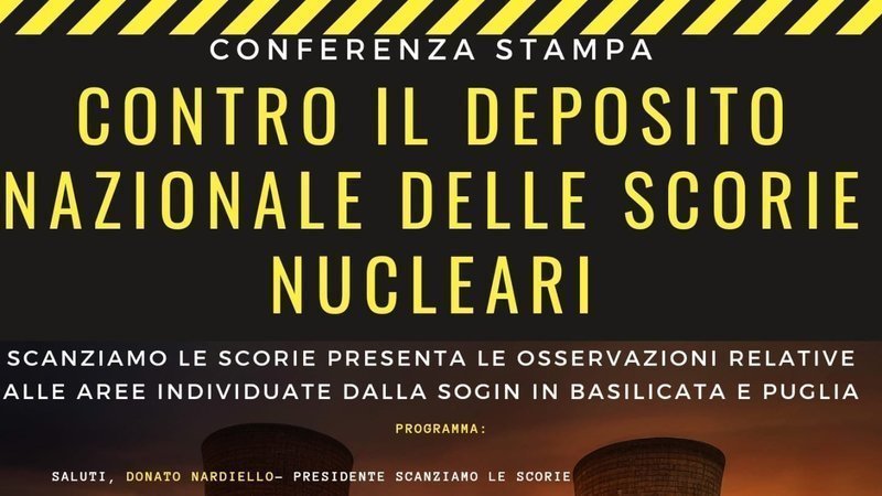 Scanzano J.co (MT), 15 giugno 2021 - L'Associazione Antinucleare ScanZiamo le Scorie, nata dall'esperienza della pacifica e civile protesta di Scanzano, presenterà lunedì 21 giugno alle ore 11.00, le osservazioni alla Sogin per ribadire e rafforzare la posizione contro la realizzazione del deposito nazionale delle scorie nucleari in Basilicata e nella Puglia.