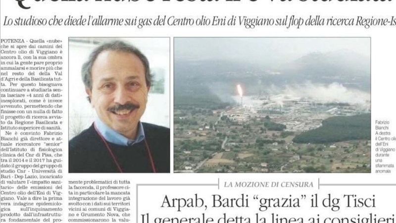Consiglio la lettura dell'articolo allegato. Il percorso è chiaro. Dopo la presentazione dello studio sugli impatti petroliferi in Basilicata sulla salute, nel quale sono emerse le connessioni tra le stesse e i picci di mortalità e di ricoveri, non c'è stata nessuna conseguenza dello studio. Anzi si è interrotto anche un accordo con l'Istituto Superiore di Sanità che avrebbe dovuto effettuare alcuni approfondimenti.