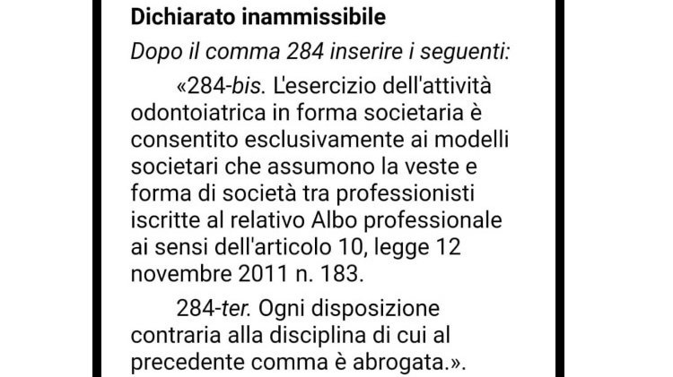 IL SENATO CASSA LA PROPOSTA ENDRIZZI FATTA PROPRIA DALLA CABINA DI REGIA ODONTOIATRICA .