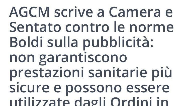 “AGCM scrive a Camera e Senato contro le norme Boldi sulla pubblicità: non garantiscono prestazioni sanitarie più sicure e possono essere utilizzate dagli Ordini in modo strumentale”