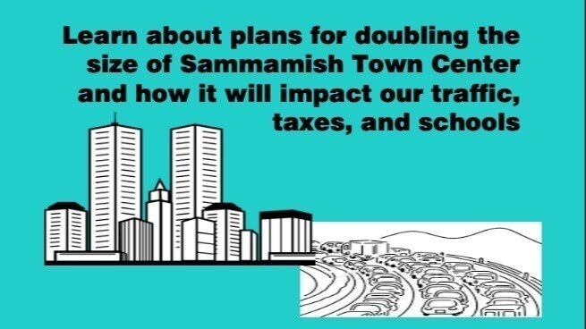 Join us next Wednesday, April 30th at 6pm at the Sammamish Library for a Resident Town Hall to learn more about how plans for doubling the Town Center will affect our traffic, schools and taxes.