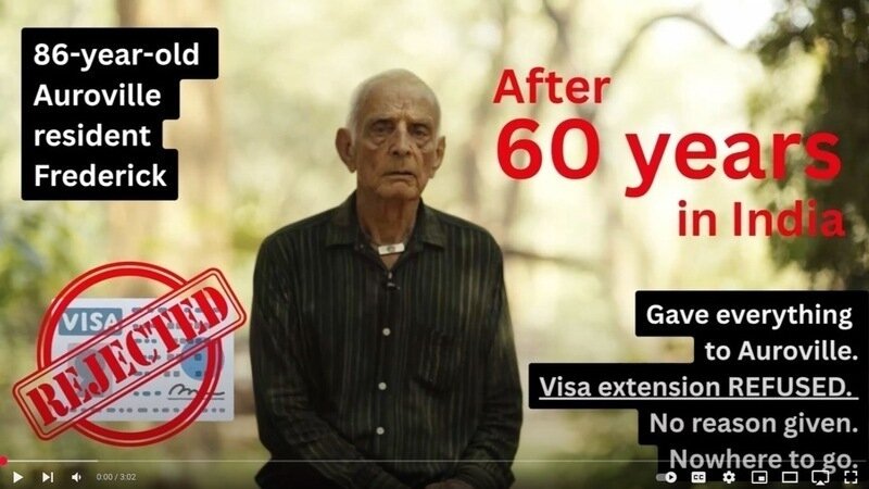 While the administrative takeover and environmental destruction continue in Auroville, South India, one of its oldest pioneers—86-year-old German national Frederick Schulze-Buxloh—is currently facing a request to leave India.