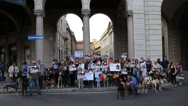 Italian advocates assembled in Milan on Saturday to call for end to export of Irish #greyhounds to race and die at the #Canidrome.