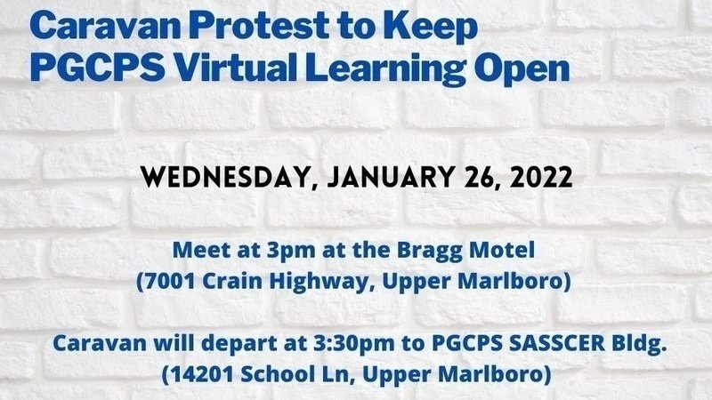 TAKE ACTION WITH PGCPS PARENTS/GUARDIANS: PEACEFUL CARAVAN AGAINST MARYLAND STATE DEPARTMENT OF EDUCATION AND PRINCE GEORGE’S COUNTY PUBLIC SCHOOL PLAN TO END K-6 VIRTUAL LEARNING PROGRAM FOR RESIDENTS AND NON-RESIDENTS OF PRINCE GEORGE’S COUNTY, MARYLAND