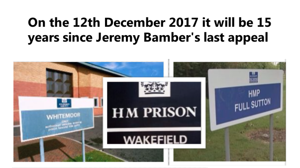 On the 12th December 2017 it will have been 15 years since Jeremy Bamber's last appeal judgement. The hearing took place between the 17th October 2002 and the 1st November 2002.