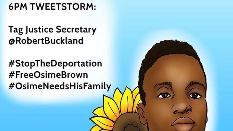 From 6pm TODAY we need as many people as possible to flood Twitter with: #StopTheDeportation #FreeOsimeBrown #OsimeNeedsHisFamily and tag @RobertBuckland and the @ukhomeoffice.