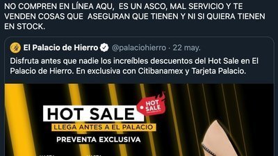 Esto no ha evitado que las mismas tiendas sigan lanzando promociones y anuncios para que la gente siga comprando (ej: Hot Sale), sin saber de la cantidad de quejas que hay en múltiples foros. Se entiende que a razón de la pandemia los servicios están comprometidos o reducidos, pero las empresas deben de ser realistas y aceptar que si no pueden cubrir la demanda no vendan sus productos en línea, así evitarán el incumplimiento de sus propias políticas y este fraude constante que comenzó desde el cierre o reducción de algunas de sus tiendas.