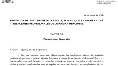 Paralización de la aplicación del real decreto XXX/18 , por el que se regulan las titulaciones profesionales de la marina mercante