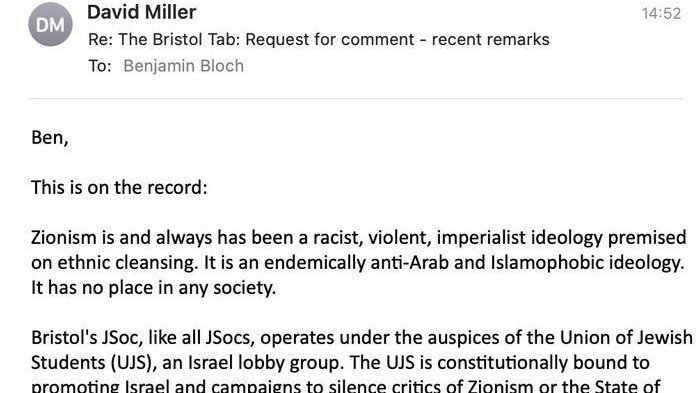 Bristol’s JSoc, like all JSocs, operates under the auspices of the Union of Jewish Students (UJS), an Israel lobby group. The UJS is constitutionally bound to promoting Israel and campaigns to silence critics of Zionism or the State of Israel on British campuses. This campaign of censorship renders Arab and Muslim students, as well as anti-Zionist Jewish students, particularly unsafe. The UJS and Bristol JSoc have consistently attacked me with a campaign of manufactured hysteria for two years, attempting to have me sacked. The campaign reached new heights of absurdity when a Zionist activist pretended to be a student in one of my classes for which she was not registered, expressly for the purpose of political surveillance.