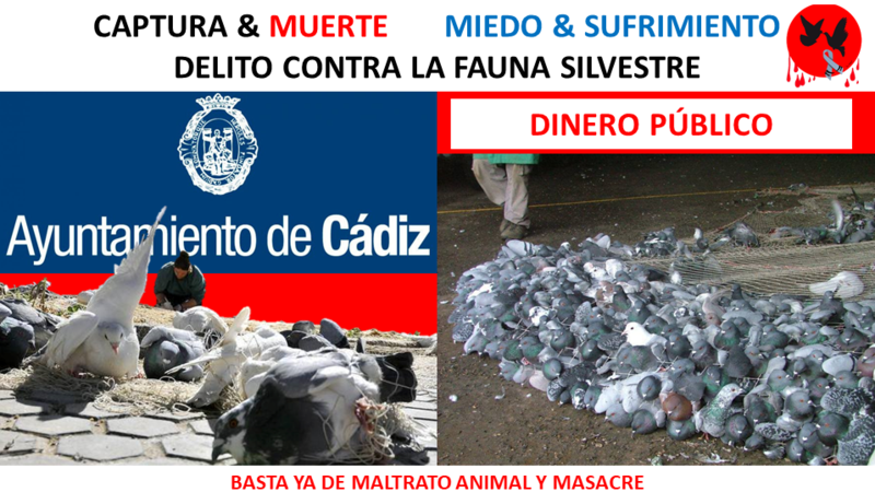 Tras desistir en el destierro, el Ayto de Cádiz informó que pasaría a pienso y palomares, pero ahora vuelven las malas noticias, dicen una cosa y en paralelo quieren liquidar palomas con nuestro dinero, el dinero público,que es de todos. Firma para que Cádiz realice sólo medidas éticas, de sobra demostrado que la matanza de palomas no controla la población de las mismas, sólo enriquece a las empresas de control de plagas, con nuestro dinero. FIRMAS NEEDED: http://bit.ly/CádizÉticoPalomas