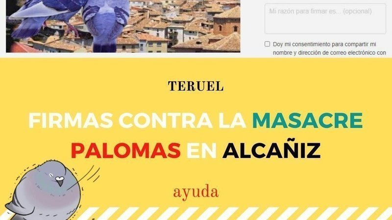 Petition updateProhibición sin excepción del TIRO de PICHÓN y prácticas similares (Campaña NACIONAL-Firma INTERNACIONAL)⚠️⚠️Las palomas de #Alcañiz en Teruel están siendo masacradas⚠️⚠️