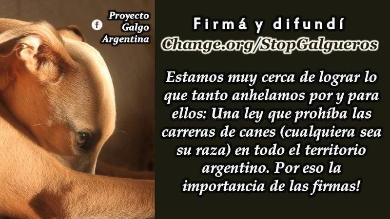Estamos muy cerca de lograr lo que tanto anhelamos por y para ellos: Una ley que prohíba las carreras de canes (cualquiera sea su raza) en todo el territorio argentino. Por eso la importancia de las firmas!