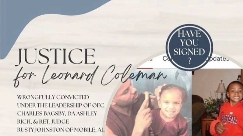 Please take a moment to share this petition, petition local and national media outlets to cover the outrageous manner in which Mobile County, Alabama handled Leonard's case, and to call/write to Assistant DA Chris McDonough regarding why you believe Leonard Coleman deserves to be exonerated.