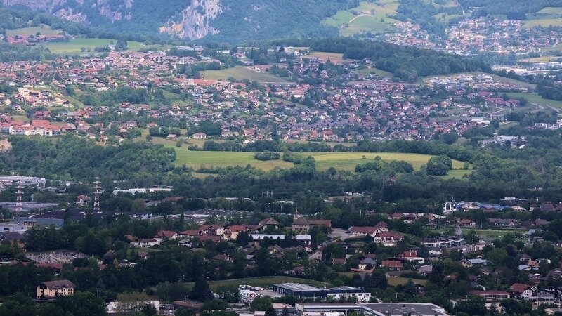 Vous la voyez cette grande tâche verte au loin? Et oui ce sont bien nos champs de Brassilly qui résistent encore et encore au béton! Ils absorbent l'eau, nous nourissent grâce au Centre d'élevage de Poisy et permettent une formidable biodiversité au milieu la ville qui pousse, pousse et pousse encore! L'existence de nos champs surplombant le Fier semble être un paradoxe dans ce monde de fou!