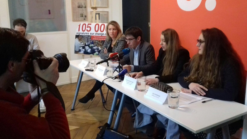 Ce vendredi 26 janvier, après la remise de la pétition auprès des représentants des trois ministres concernés, Ségolène ainsi que des membres de l'Association des familles victimes du lait contaminé aux salmonelles et leur avocate ont répondu aux questions des journalistes lors d'une conférence de presse qui a eu lieu dans le bureau de Change.org.