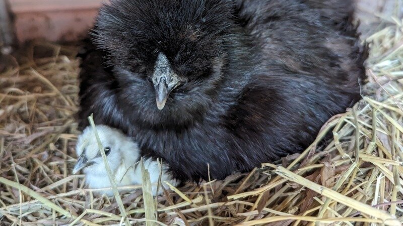 Midnight is being a wonderful mother to two new chicks (as seen in the pic, although one chick is hiding).