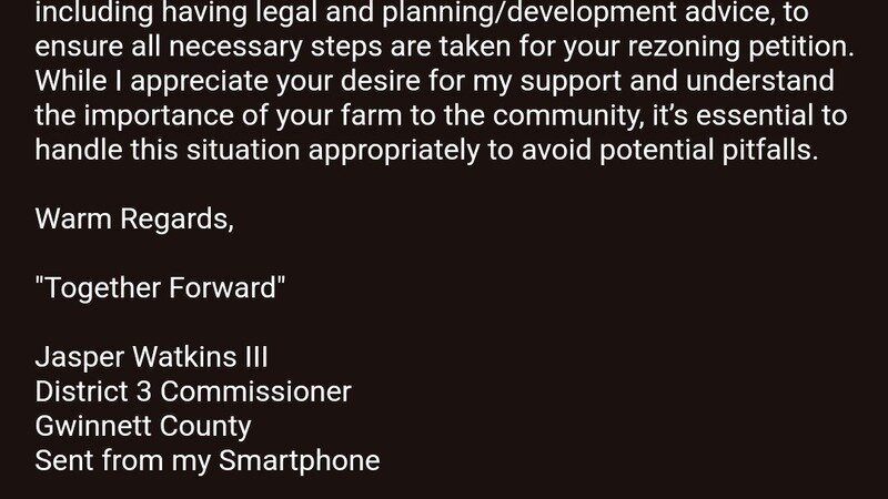 It's crucial to approach this matter in a formal, legally sound manner, particularly given the potential rezoning issues. Meeting without legal counsel and careful planning could lead to missteps, misunderstandings, or even jeopardize the chances of success. It's essential to follow proper procedures, including having legal and planning/development advice, to ensure all necessary steps are taken for your rezoning petition. While I appreciate your desire for my support and understand the importance of your farm to the community, it’s essential to handle this situation appropriately to avoid potential pitfalls.