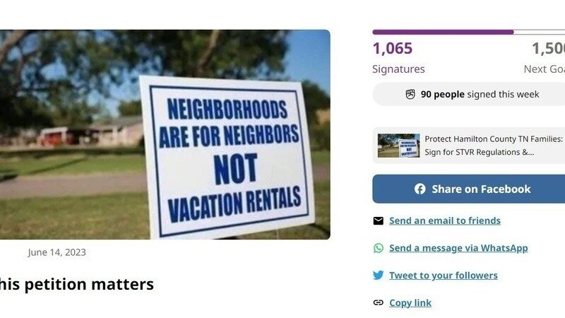 Petition updateProtect Hamilton County Families: Sign for STVR Regulations & Homeowner RightsOCTOBER 4TH - 9:30 AM - PLEASE JOIN US AT THE COMMISSIONERS MEETING