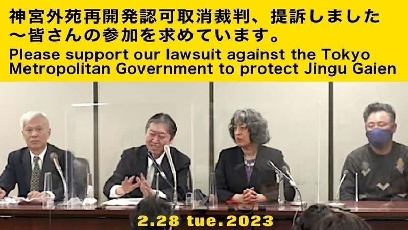 Approximately 60 citizens, including local residents and experts from various fields, submitted a lawsuit to the Tokyo District Court on February 28 to rescind the Tokyo Metropolitan Government’s approval of the Jingu Gaien redevelopment plan. I (Rochelle Kopp) am the lead plaintiff.
