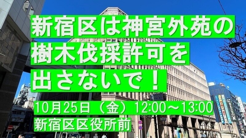 There will be a demonstration between noon and 1 pm today in front of the Shinjuku Ward office, asking for Shinjuku Ward to not approve the application.
