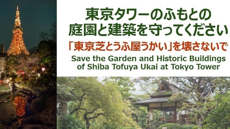 I have started a new petition asking Tokyo Tower Co. (the landowner), the Tokyo Metropolitan Government, and Minato Ward to preserve the garden and buildings, either by continuing to operate them as a cultural space or by preserving the garden as a public park. We also want to send a clear message that yet another high-rise condominium or commercial complex should not replace this distinctive green space.
