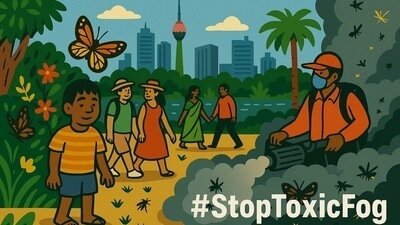 Chemical fogging sprays neurotoxic pesticides like Malathion and Permethrin mixed with diesel fumes into the air we breathe — in our markets, schools, parks, and even tourist zones.