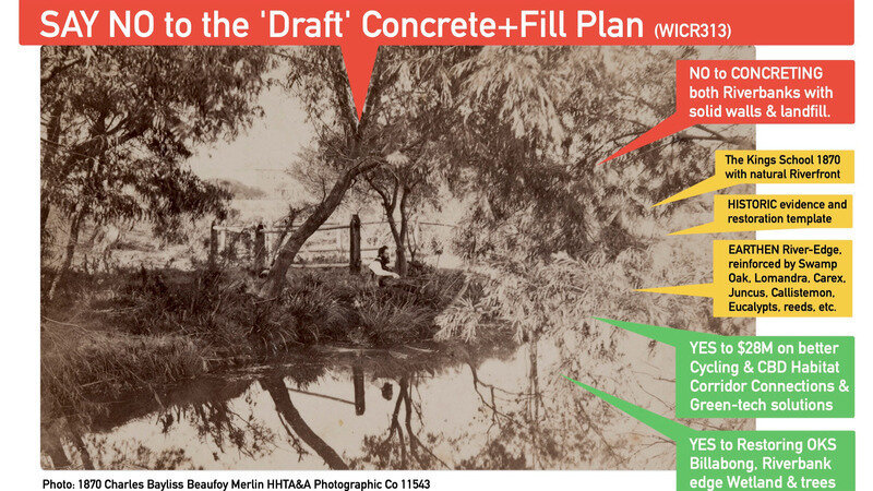 $28M is a massive budget and it should not be concrete-walling the surviving natural riverbanks for the future. The Old Kings School (OKS) riverfront needs rehabilitation, to restored as the Billabong-like wetland shoulder it always was, with Swamp Oak, Sedges, Reeds, Paperbark trees and native pasture grass - a beautiful natural habitat corridor at the City doorstep...!